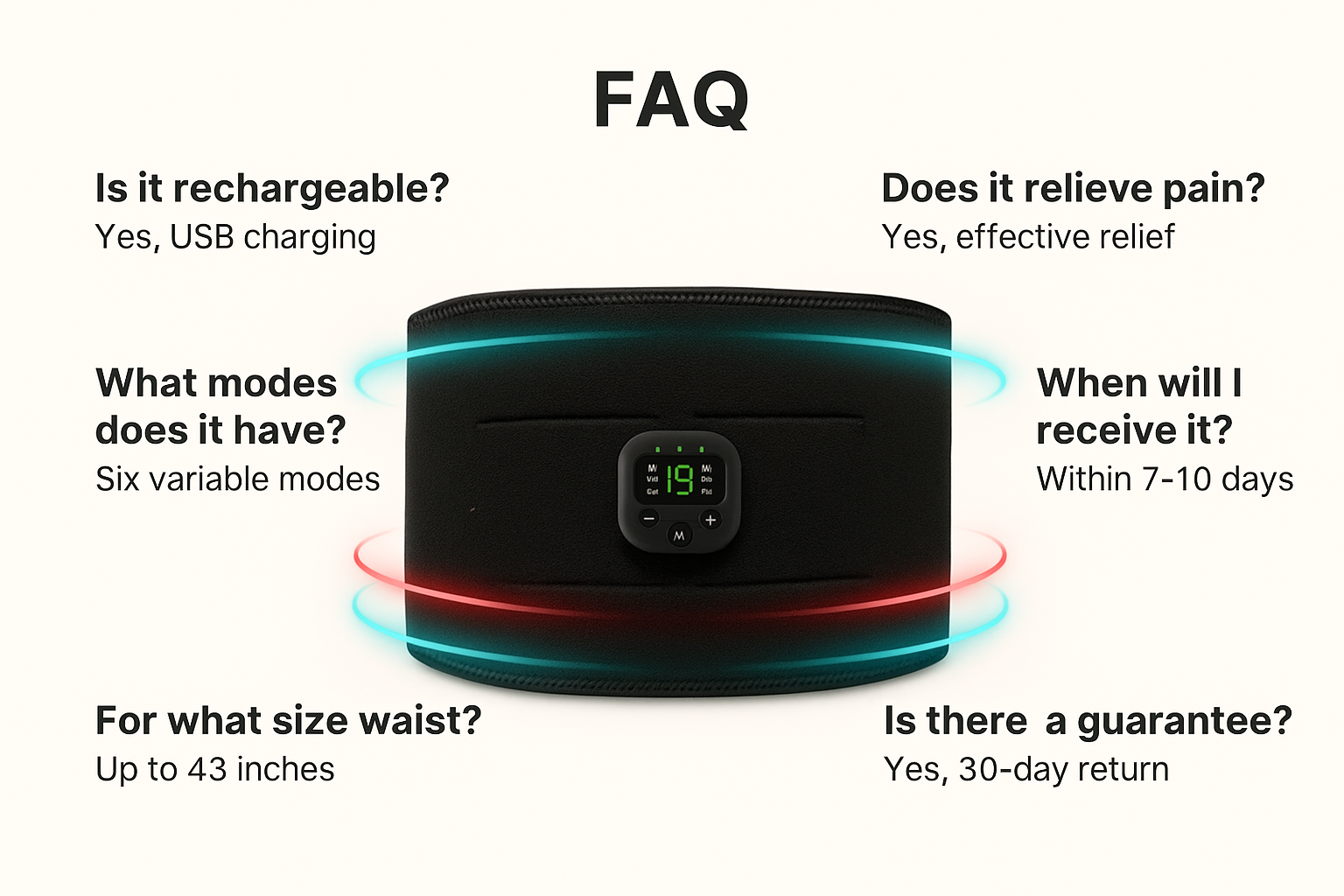 The RelaxaBelt delivers deep vibration therapy that targets core muscles and reduces stiffness after workouts. Designed for athletes and everyday users, it helps improve circulation, speed up recovery, and keep your waist feeling lighter and more relaxed throughout the day.